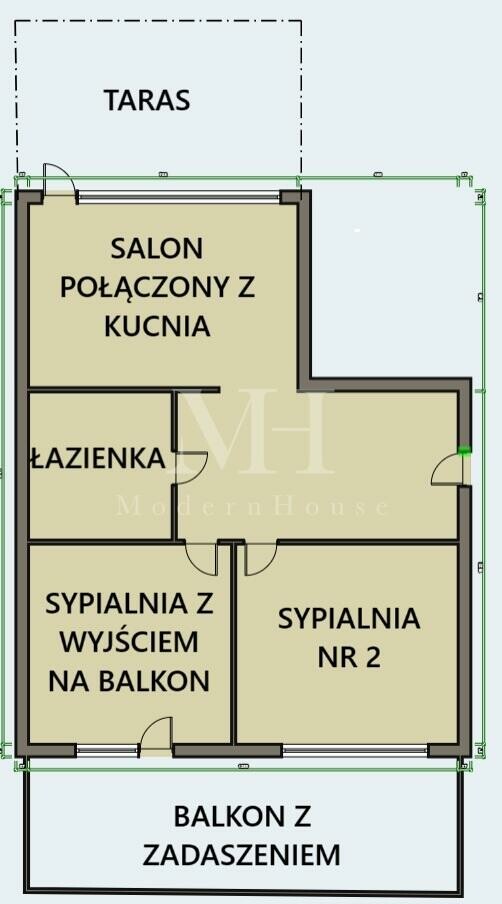 - Dwóch sypialni w tym jedna z wyjściem na duży zadaszony balkon