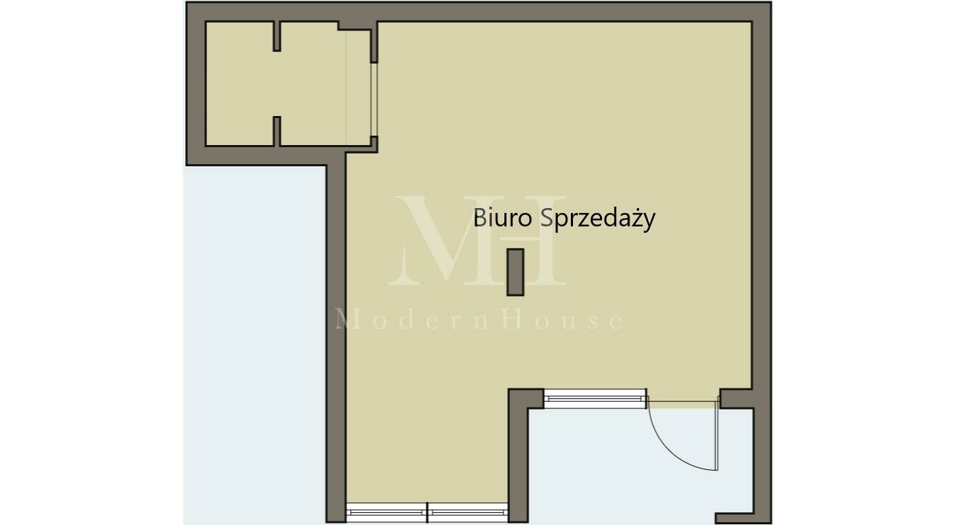 - Lokal frontowy (71,85 m²) – obecnie wykorzystywany jako biuro sprzedaży, z dużą, przeszkloną witryną na całej szerokości lokalu, przy samym ciągu pieszym. Posiada bezpośrednie wejście z ulicy i jest pierwszym lokalem w pasażu, co zapewnia maksymalną widoczność i idealne warunki do prowadzenia działalności usługowej, handlowej czy biurowej.