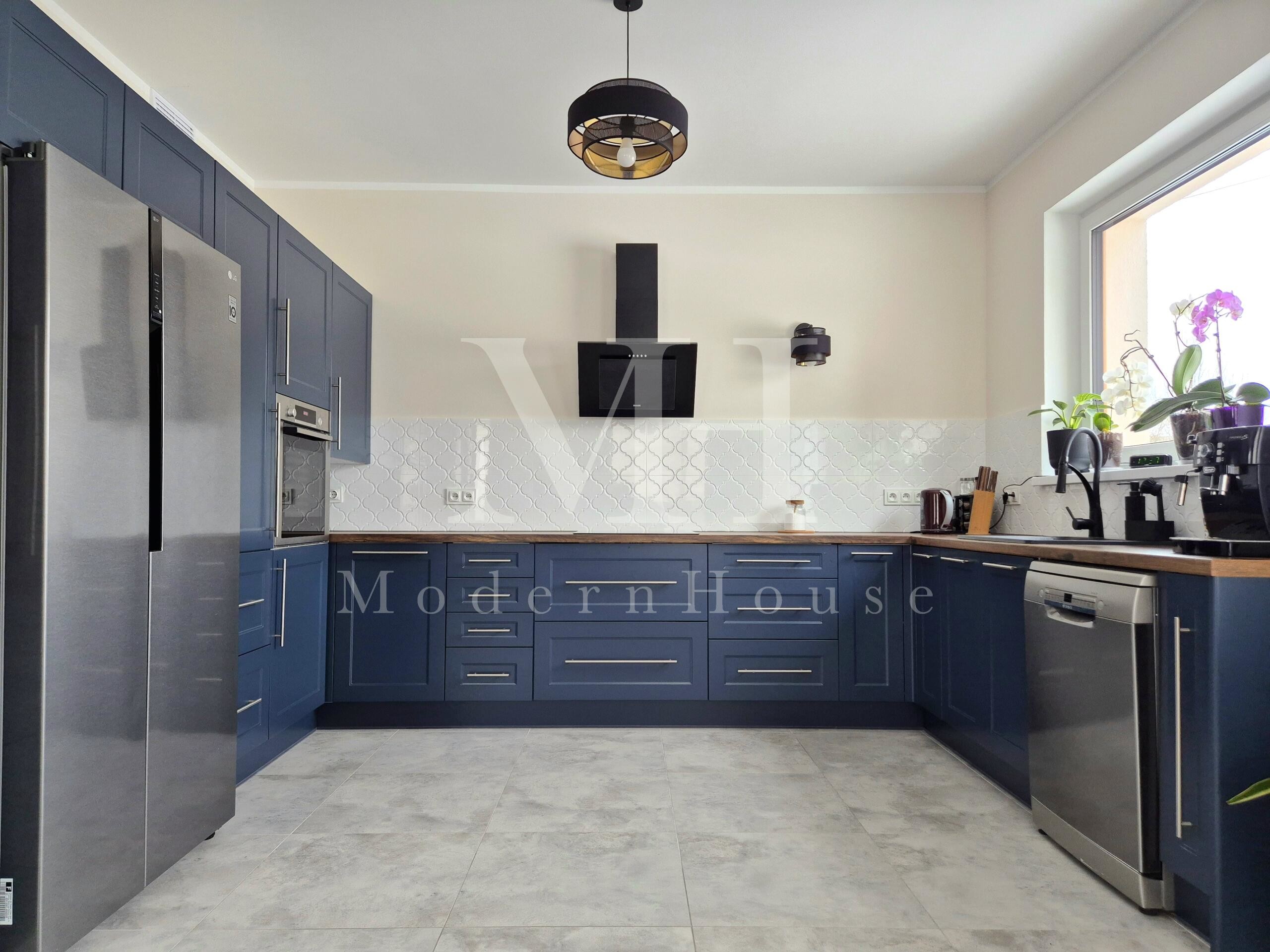 Dodatkowe atuty: ogrzewanie podłogowe w całym domu, monitoring zewnętrzny, blaszany garaż dwustanowiskowy, zbiornik na deszczówkę.