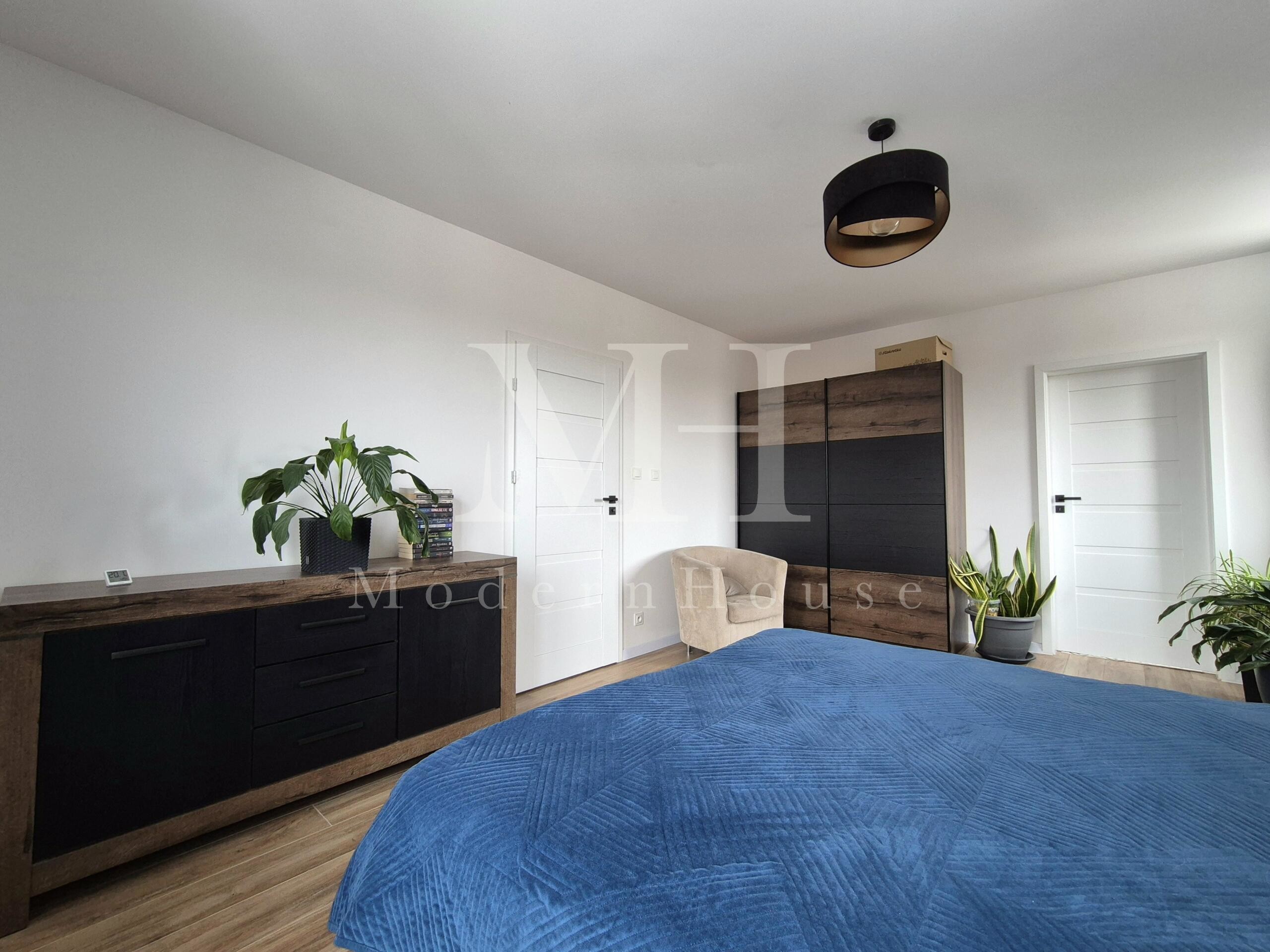 - duża sypialnia z wydzielonym pomieszczeniem pod prywatną łazienkę (obecnie stan surowy – wykorzystywane jako pralnio-suszarnia),