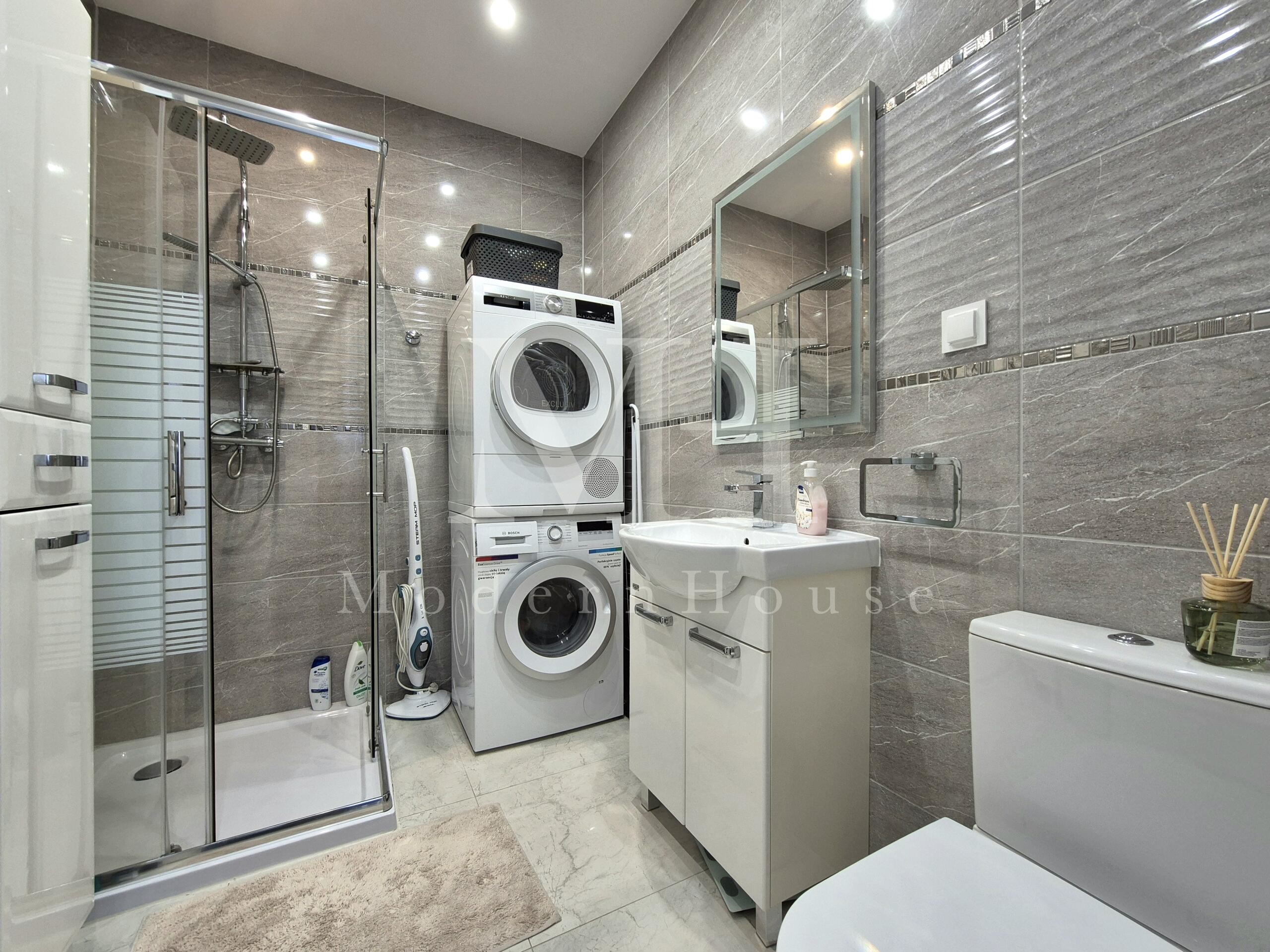 - łazienka (na zdjęciu z pralką i suszarką).